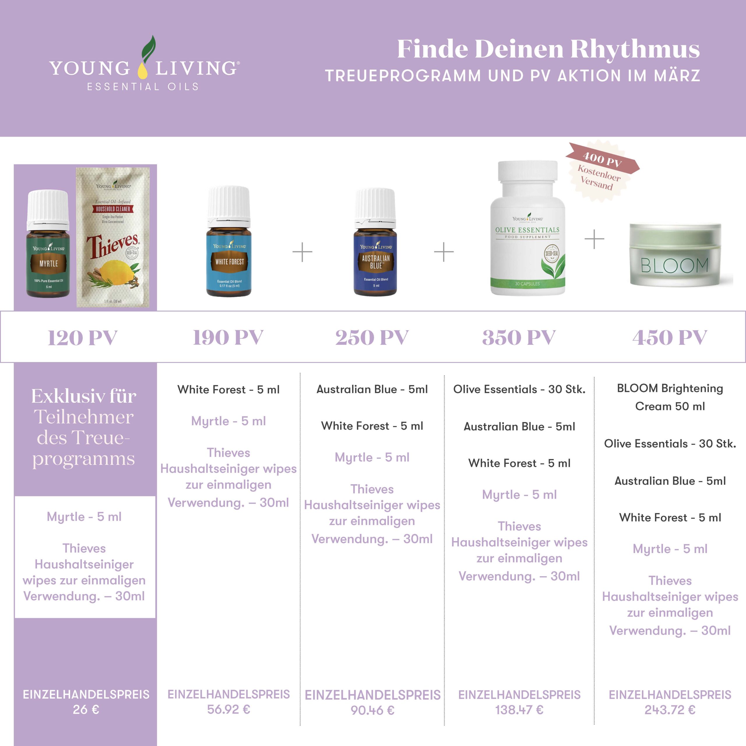 Bei 120 PV in monatlichen Treueprogramm bekommst Du in jedem Monat schon ein GRATIS Öl.